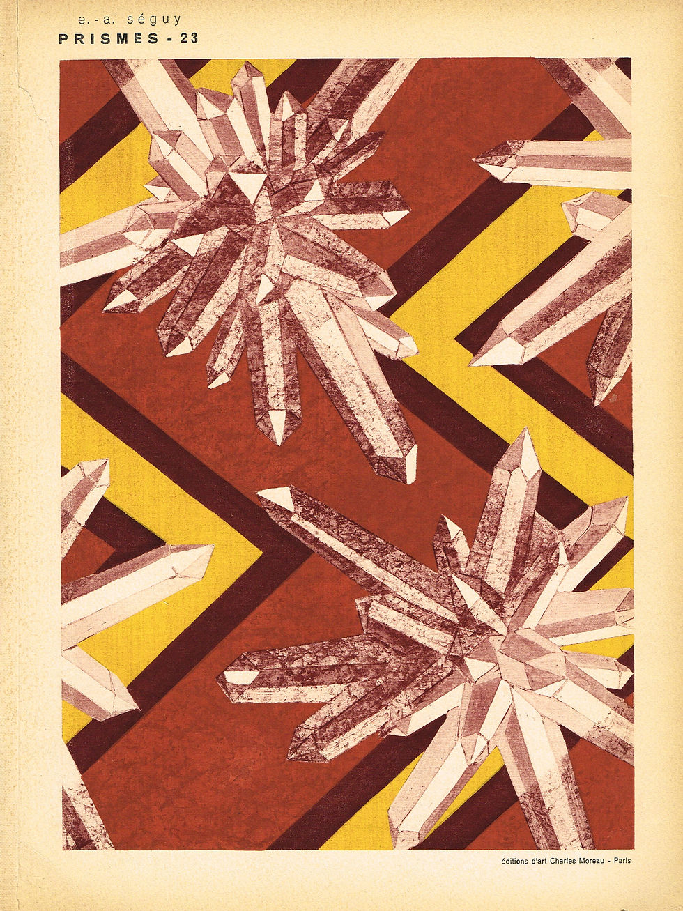 Seguy created 11 albums of illustrations and designs from the turn of the century to the 1930s, and his style reflected the influences of both Art Nouveau and Art Deco. His various color portfolios of visual ideas for artists and designers often featured motifs based on the natural world, including flowers, foliage, crystals and animals.